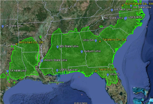 pine trees in texas map